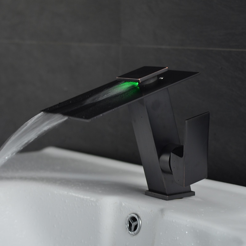 More information about Bathroom Faucet LED Waterfall Spout 3 Color Changes with Temperature, Sink Mixer Mono Basin Taps, Single Handle One Hole Brass Washroom Vessel Tap Deck Mounted