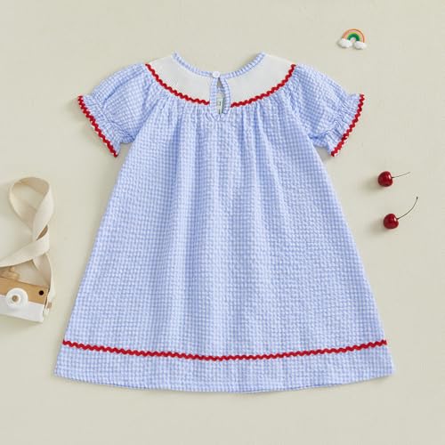 Toddler Little Baby Girl Summer Outfit Smocked Dress Puff Short Sleeve Stripes Dresses Kids Boutique Clothing 5