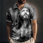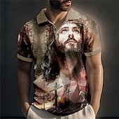 Highlights [Fabric] : Crafted from a premium blend of breathable materials, this men's polo shirt is likely a composition of cotton and polyester. It offers a soft touch, ensuring comfort and durability throughout the day. [Fit] : This polo shirt boasts a timeless design with a classic polo collar and a three-button placket. The fit is relaxed yet tailored, achieving the perfect balance between comfort and style. [Design Highlights] : The standout feature of this shirt is its striking 3D all-over print. Featuring vivid Jesus and Christian-themed imagery, it exudes uniqueness and boldness. The short sleeves are finished with ribbed cuffs, providing a neat and polished look. [Occasions] : Ideal for a variety of settings, this polo shirt is perfect for casual outings, vacation wear, festival gatherings, and party outfits. Its artistic and eye-catching design makes it suitable for both relaxed and more creative environments. [Sizes] : Available in a wide range of sizes from S to 5XL, this shirt caters to a diverse array of body types, ensuring a suitable fit for everyone.