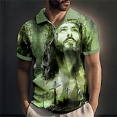 Men's Jesus Christian Polo Shirts Golf Shirt Short Sleeve Polo Shirts Collared Shirts Vintage Casual Vacation Wear Festival Wear Party Outfits Buttons 3D Print Red Blue Green 3