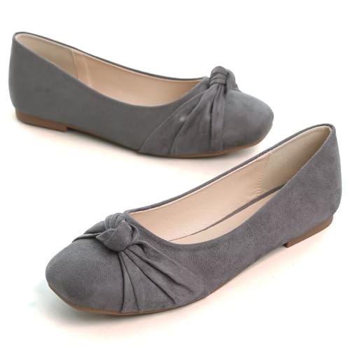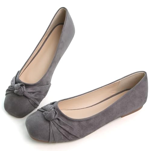 INEELUYI Women Flats Square Toe Bowknot Dress Flats Cute Slip On Ballet Flats Soft Walking Flats 7