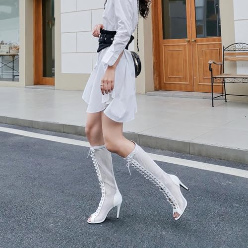 • ➤FINEST QUALITY & COMFORTABLE】: Womens Ladies Summer Fashion Sexy Knee High Boots Peep Toe Heeled Sandals Pump Shoes with High-Quality Mesh & Leather Upper Material; Cozy Breathable Microfiber Lining.