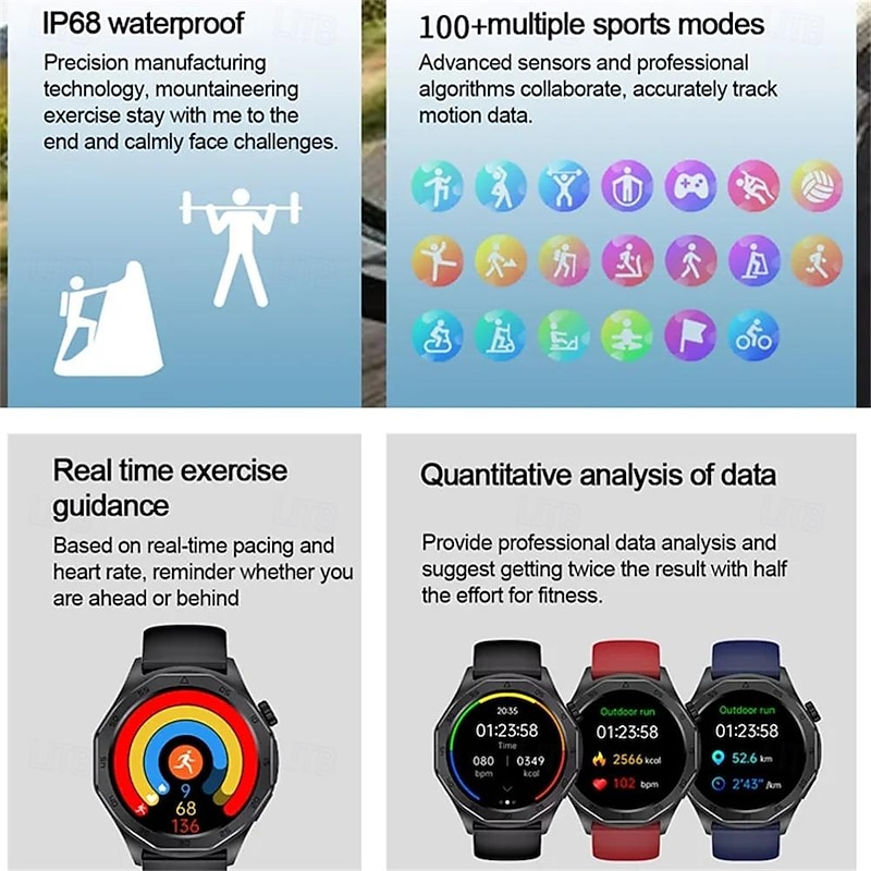 $52.99 - E480 Smart Watch 1.43 inch Smartwatch Fitness Running Watch Bluetooth ECG+PPG Temperature Monitoring Pedometer Compatible with Android iOS Women Men Long Standby Hands-Free Calls Waterproof IP 67 2025. Shop for cheap Smartwatch online? Buy at lightinthebox.com on sale today!
