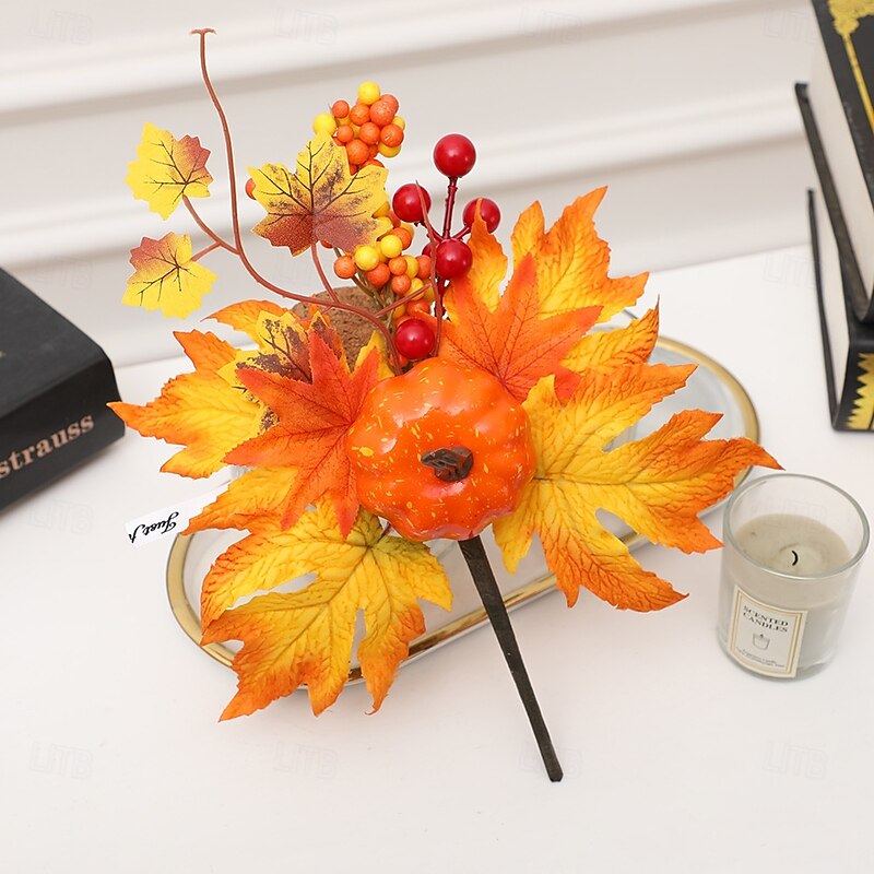 HOT ! Halloween Fall Ornament with Maple Leaves, Pumpkin, Pinecones and Red Berries for Autumn Harvest Festival Decoration, Spooky Halloween Scene, Fall Accessories for Home and Party Decor