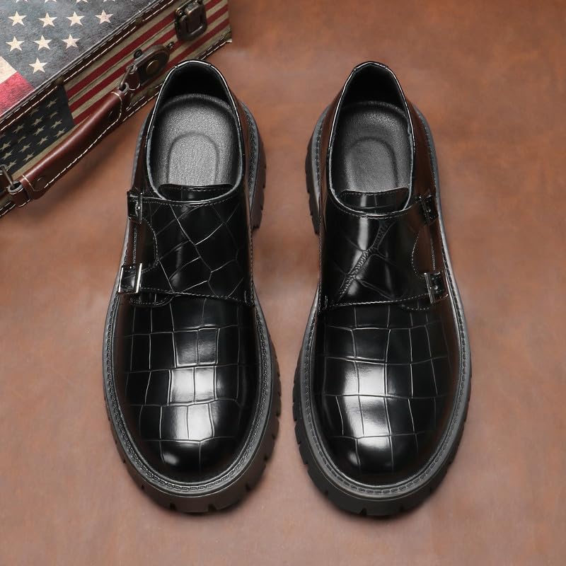 Santimon Men's Monk Strap Leather Loafers Buckle Chunky Added Height Durable Slip On Shoes 6