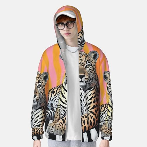 • Premium Quality Fabric: UPF 50+ sun protection jacket hooded, shield your skin from harmful sun rays. Breathable, lightweight & soft fabric makes these sun shirts performence better for hot days. The Striped Leopard sun protective shirts fabric wicks away sweat and moisture, keeping you dry and fresh