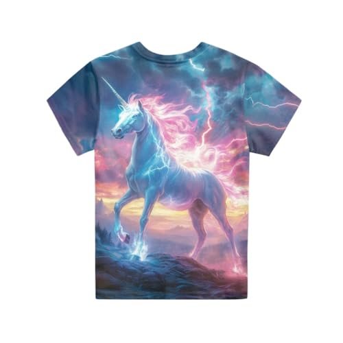 GLUDEAR Kids Unicorn Printed Tops Tees Girl Boy O-Neck Short Sleeve Casual Pullover Blouse T-Shirt 4