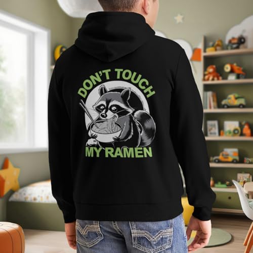Kids Funny Japanese Noodle Ramen Racoon Retro Boys Girls Lightweight Kangaroo Pocket Fleece Hoodies 4