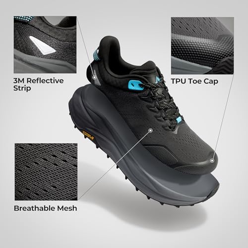 • Wide Toe Box: To accommodate various foot shapes, these trail running shoes for men provide a roomy toe box for toes to spread out while maintaining natural foot alignment and stability, aiding in forward propulsion during walking and running.
