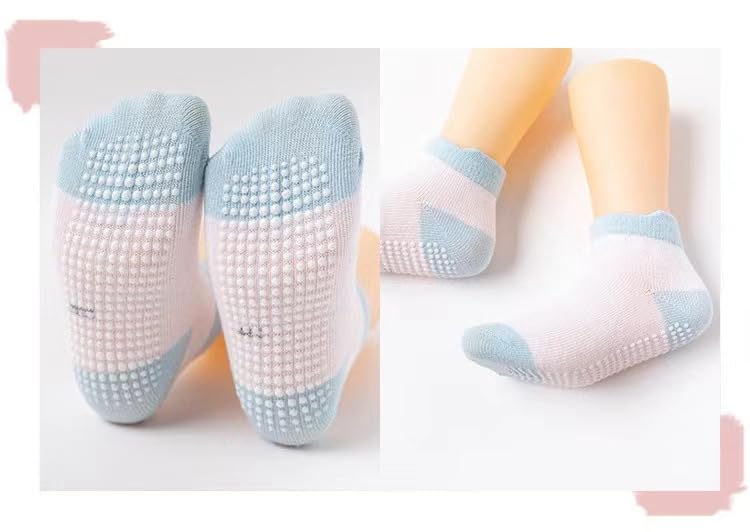 Fabric type: 100ï¼…CottonCare instructions: Machine WashOrigin: ImportedPattern: SolidAnti-Skid Design: Ensure your baby is cozy and secure with our baby girl socks featuring customized round dotted grippers that prevent slips for active crawlers & walkersElastic arch strip at the top provides additional support and helps keep the sock in place. A varitey of colors and patterns make these non skid socks perfect for mixing and matching with different clothing looks, make your little one`s feet even cuterNot too thin or too thick material makes these non slip socks suitable for all seasons, perfect for hanging out in the house without shoes and also makes it easier to get shoes onThe extra firm grips at the bottom provides excellent traction and good protection, making it easier for beginner walkers to get around on slippery hardwood floors with fun and take more steps with confidenceSUITABLE AGE: Our kids non-slip socks are suitable for baby toddler kids aged 0-12 months 1-3T 3-5T There are 6 pairs of baby non slip crew socks in a pack, which can meet the daily change and wash, so that the baby always has clean socks to replace Perfect for everyday use. premium materials and excellent craftsmanship ensure long-lasting durability.