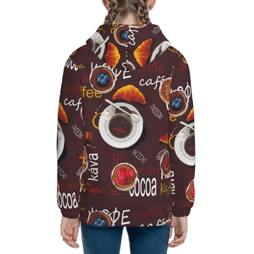 A Cup Of Black Coffee On A Saucer Kids Pullover Hoodies Boys Zip Up Sweatshirts Girls Athletic Clothes with Pocket 5