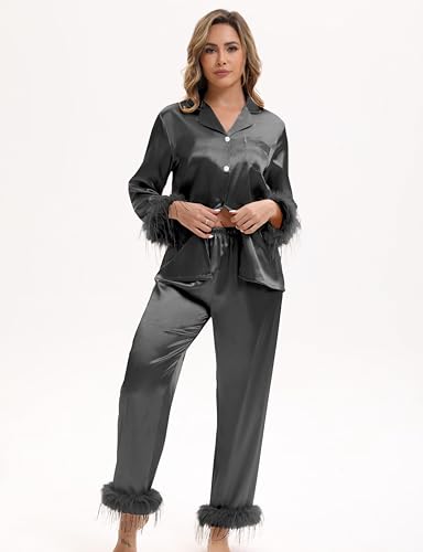 • The Gift of Glam for Every Occasion: Show your love with a womens satin pajama set that feels like a warm embrace. This feather pjs for women set makes an unforgettable gift for birthdays, holidays, or a romantic getaway—choose classic black satin pajamas for women or elegant Champagne satin pajamas for women