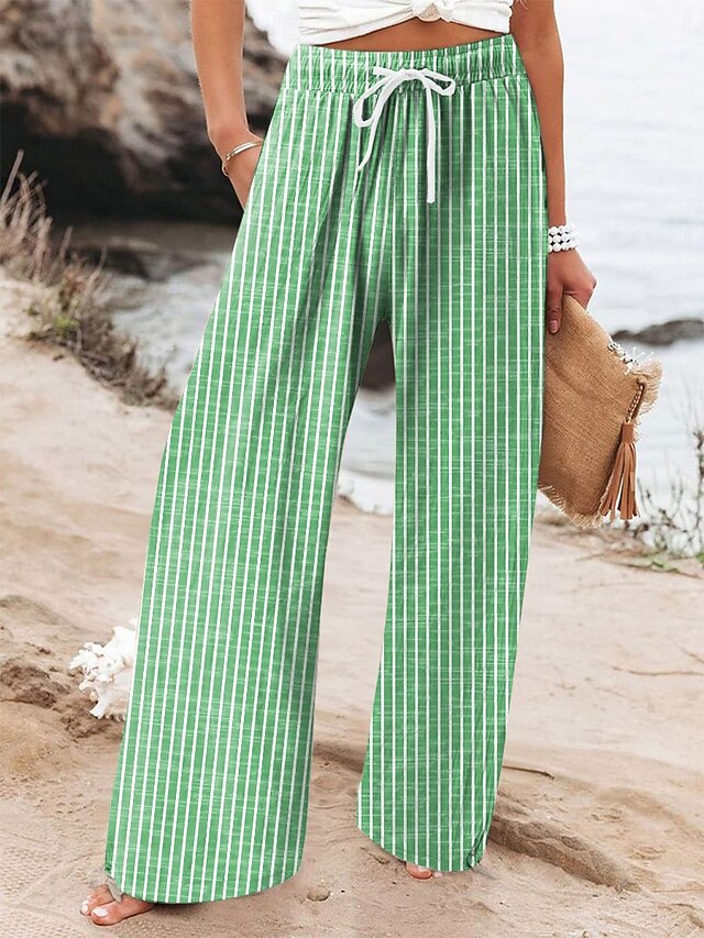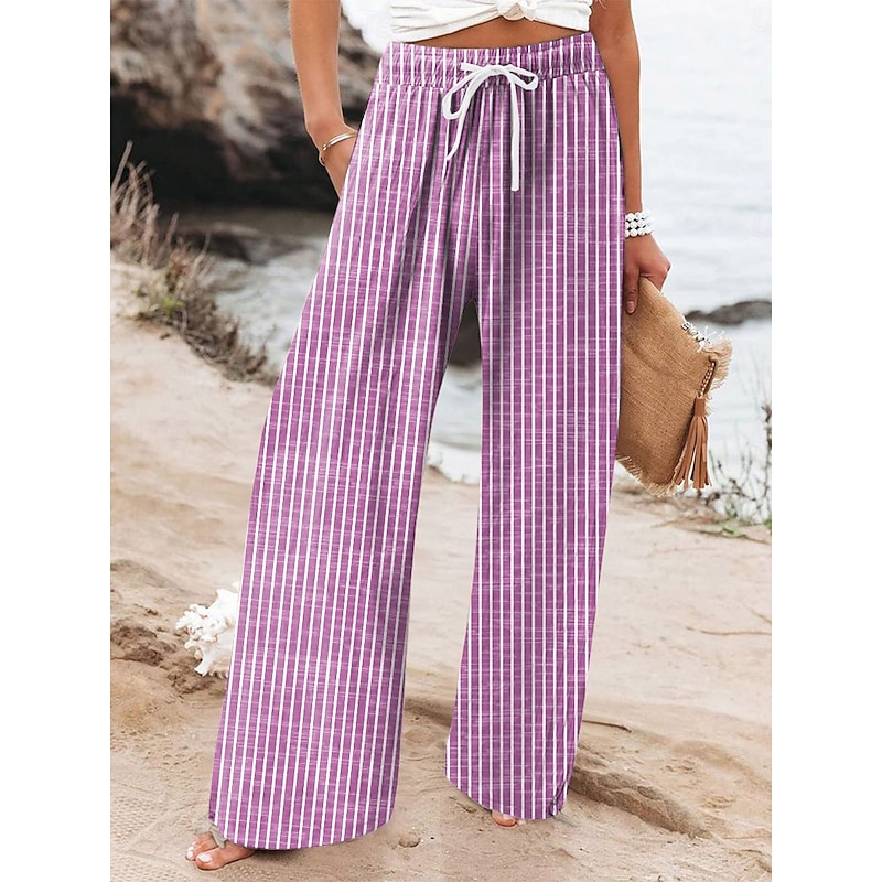 Women's Wide Leg Chinos Beach Shorts Vacation Fashion Casual Full Length High Waist Graphic Stripe Drawstring Printing Soft Breathable Micro-elastic Vacation Casual Daily Violet Robin's Egg Blue Green 9