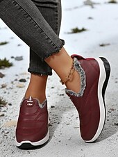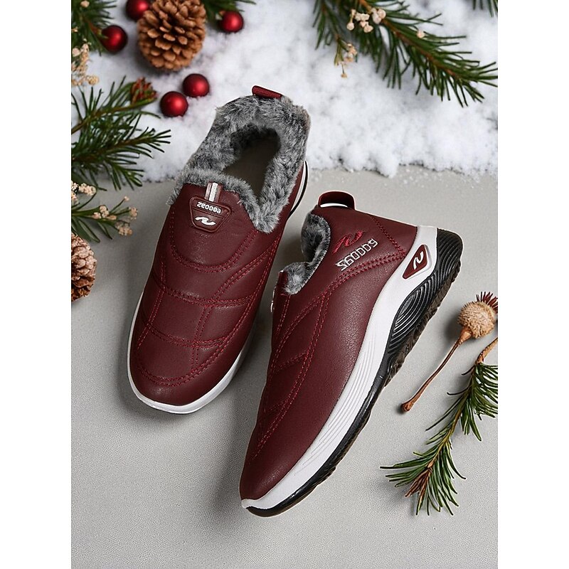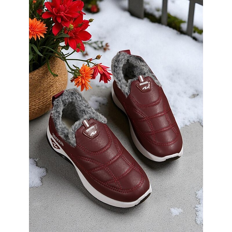 HOT ! Women's Burgundy Winter Slip-On Sneakers – Faux Leather Warm Lined Shoes with Non-Slip Sole for Outdoor Casual Wear
