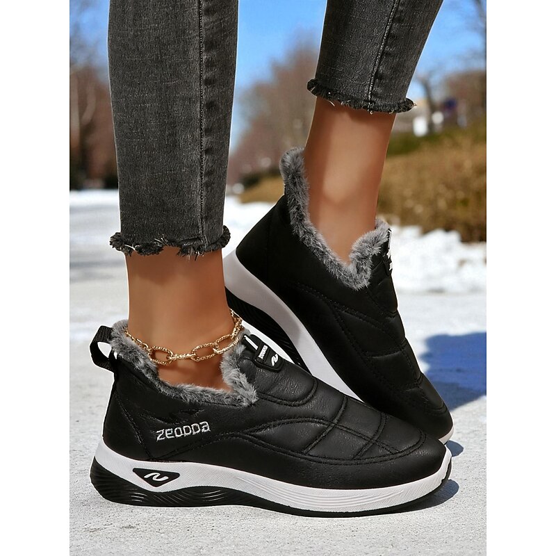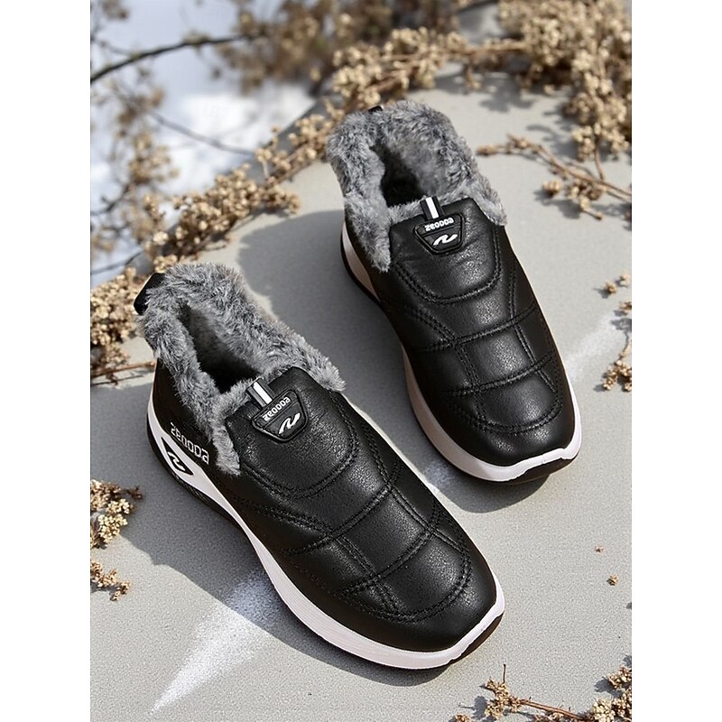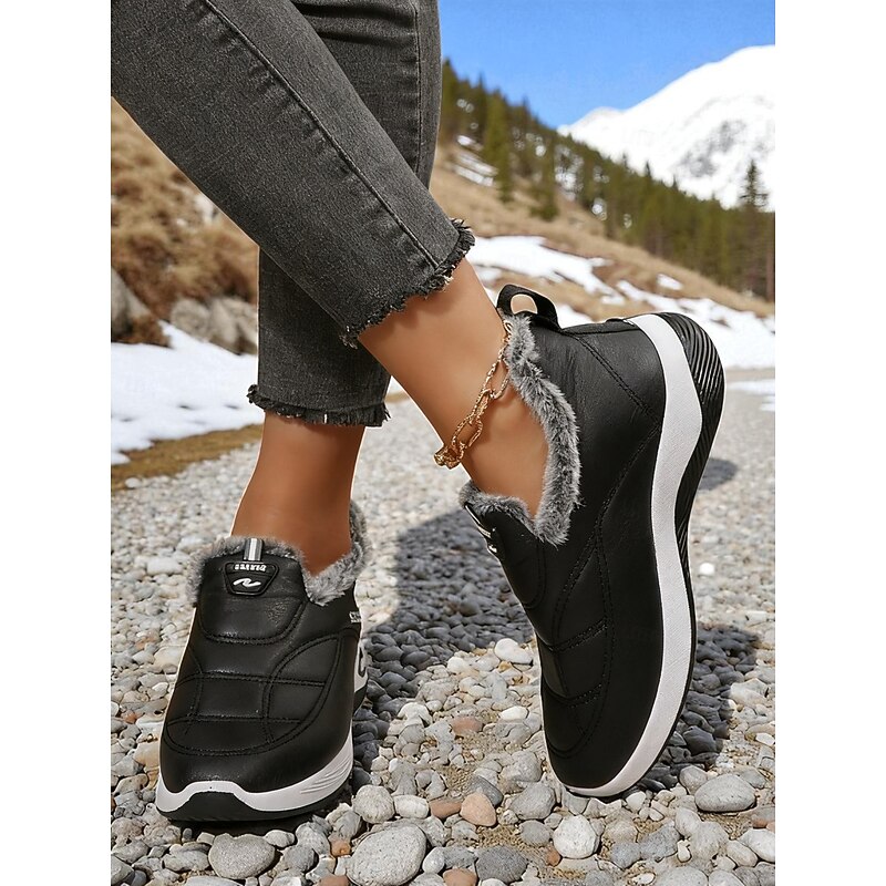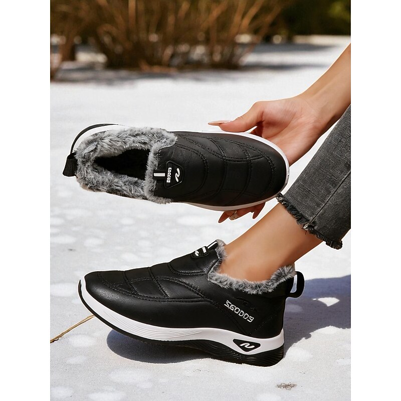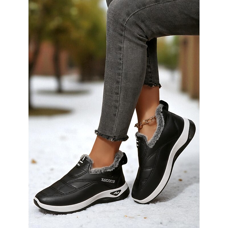 More information about Women's Burgundy Winter Slip-On Sneakers – Faux Leather Warm Lined Shoes with Non-Slip Sole for Outdoor Casual Wear