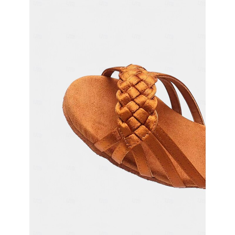 HOT ! Women's Tan Latin Dance Shoes with Braided Strap Detail, Low Heel Design for Children's Latin Dance Performances