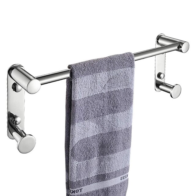 More information about Bathroom Hardware Accessory Stainless Steel Towel Bar with Robe Hook Multifunction Wall Mounted Chrome Silvery 1pc