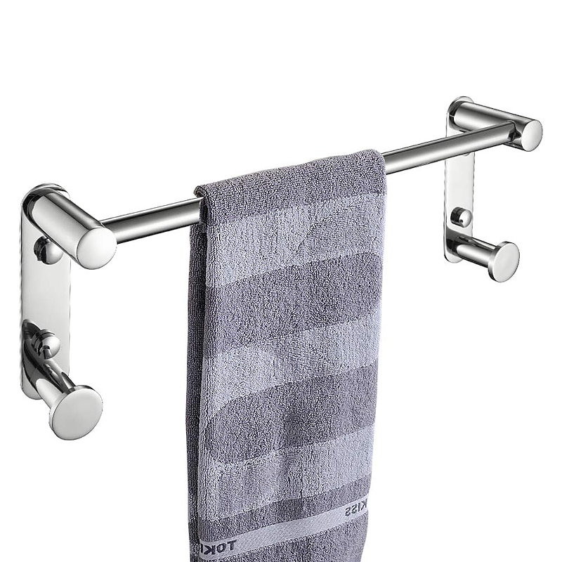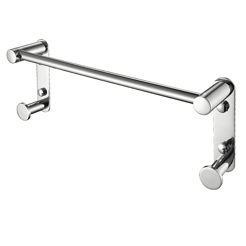 Bathroom Hardware Accessory Stainless Steel Towel Bar with Robe Hook Multifunction Wall Mounted Chrome Silvery 1pc 1