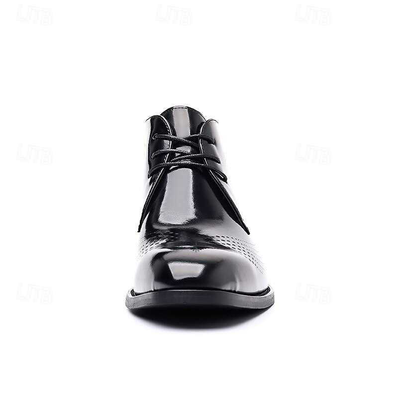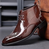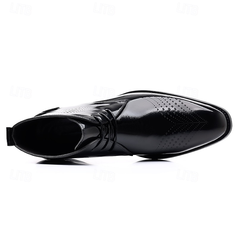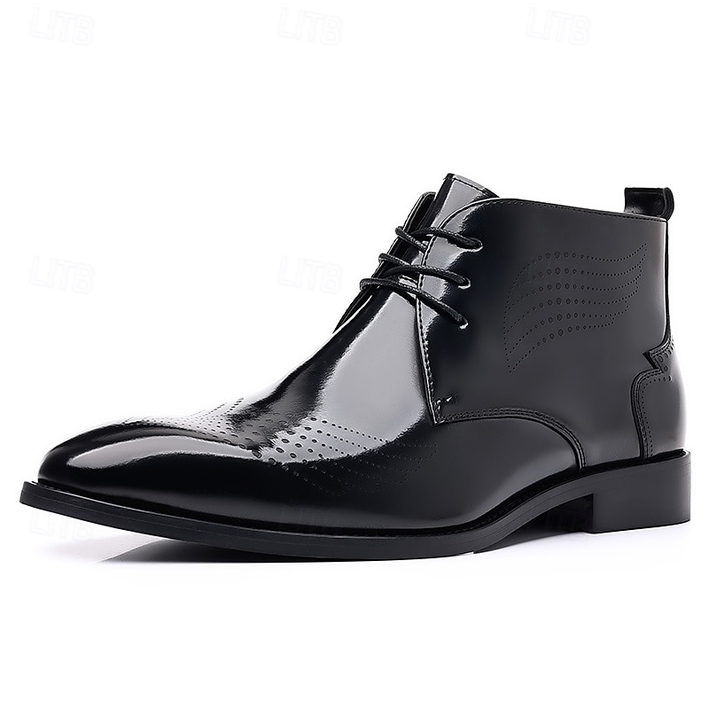 More information about Men's Glossy Burgundy Faux Leather Wingtip Brogue Ankle Dress Boots – Formal Lace-Up Shoes for Weddings & Business