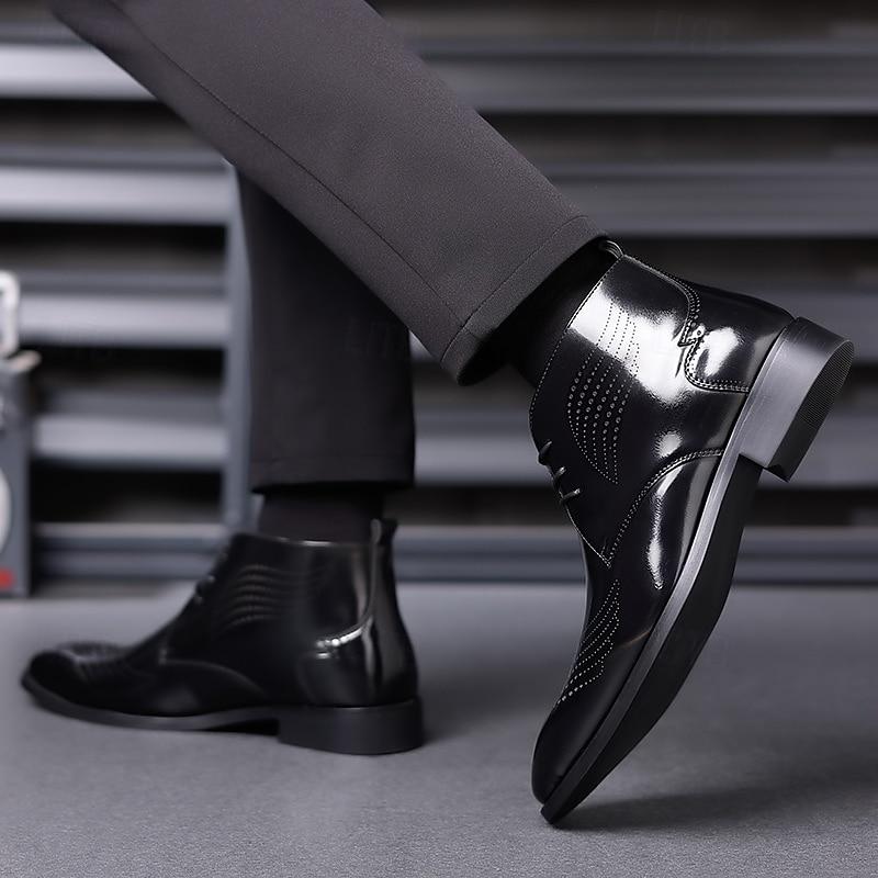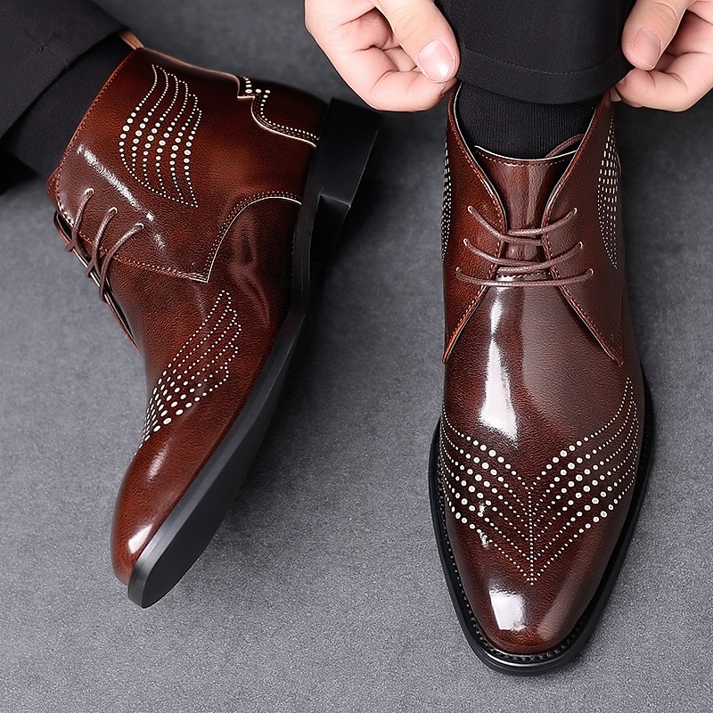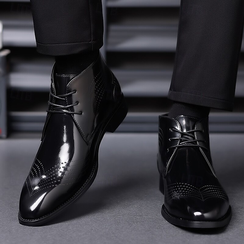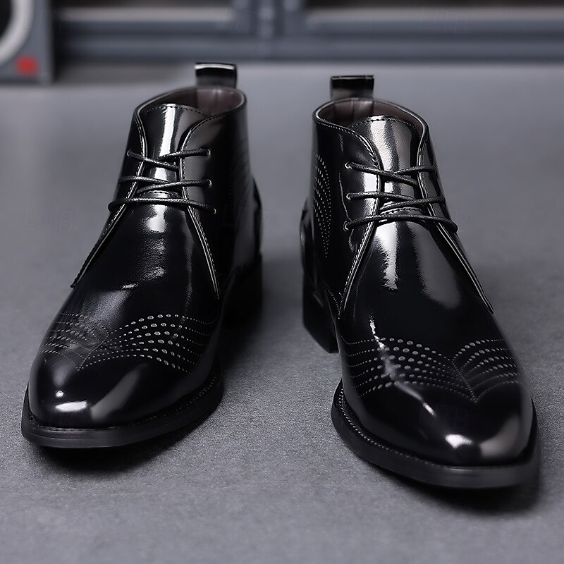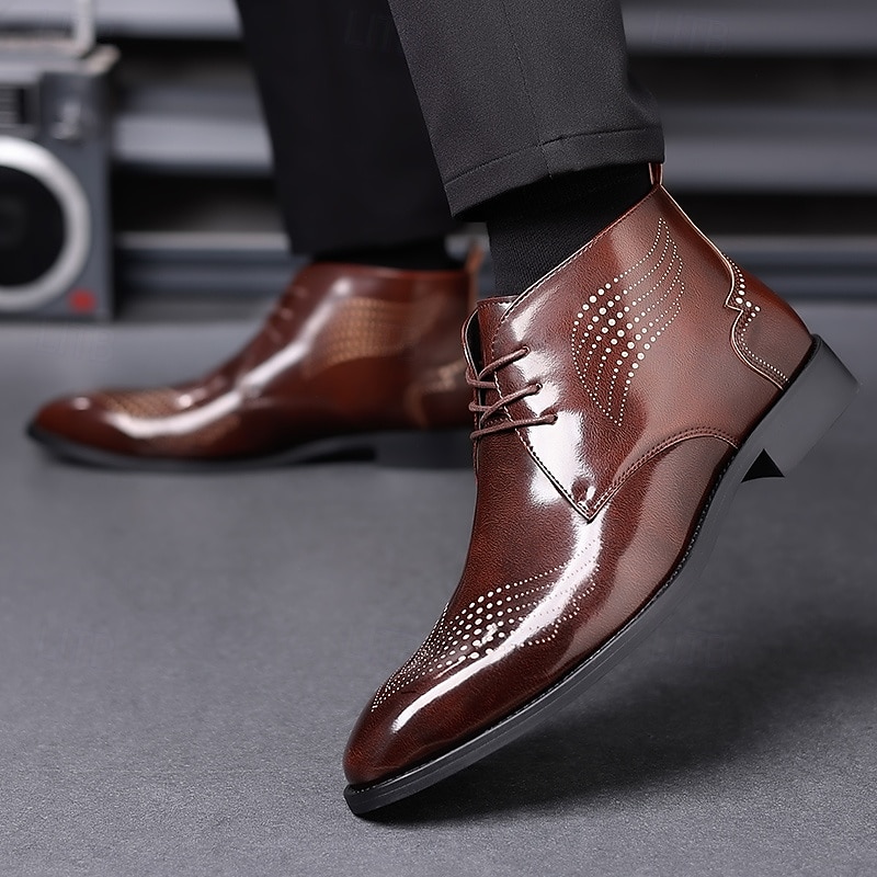 Men's Glossy Burgundy Faux Leather Wingtip Brogue Ankle Dress Boots – Formal Lace-Up Shoes for Weddings & Business 24