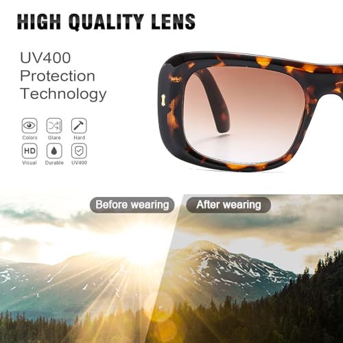 • UV400 Sunglasses:Our women's sunglasses block 99.99% of UVA and UVB radiation, protecting your eyes against long term UV damage and providing you with a natural and clear vision.