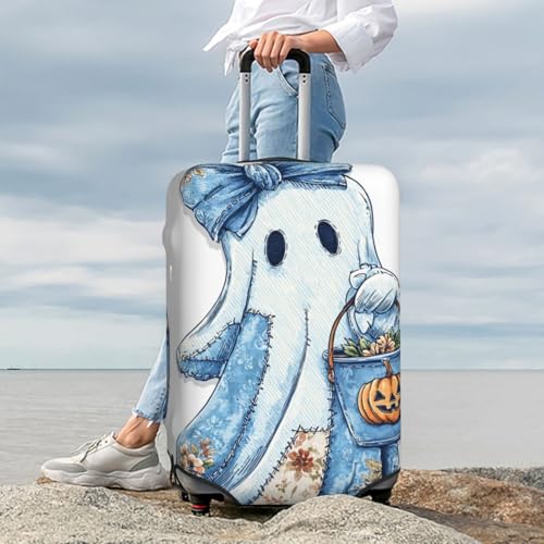 More information about Cute Halloween Ghost Blue Denim Pieces Elastic Travel Luggage Covers Dustproof Scratch-Resistant Suitcase Protector Fit 22-24 Inch