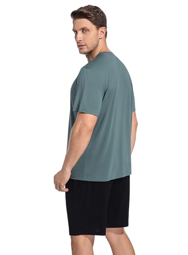 SlumberMee Mens Pajama Set Soft Cooling Viscose Summer Pjs Short Sleeve Sleepwear 2 Piece Set Henley Loungewear with Pockets 7