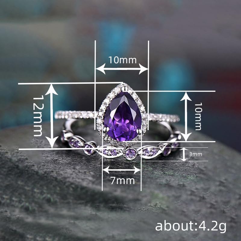 More information about A Set Of Purple Elegant Water Droplet Zirconia Ring For Women Exquisite Light Luxury Rings Ladies Fine Jewelry Daily Life Dating Decor For Wedding