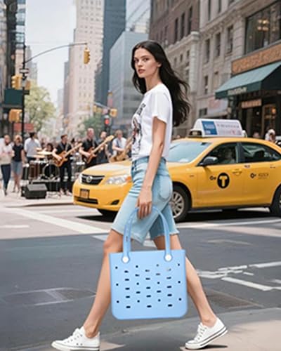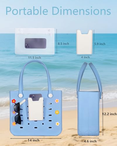 Rubber Beach Bag with Silicone Phone Holder Accessories for Women, Waterproof Sandproof Travel Tote Bag 6