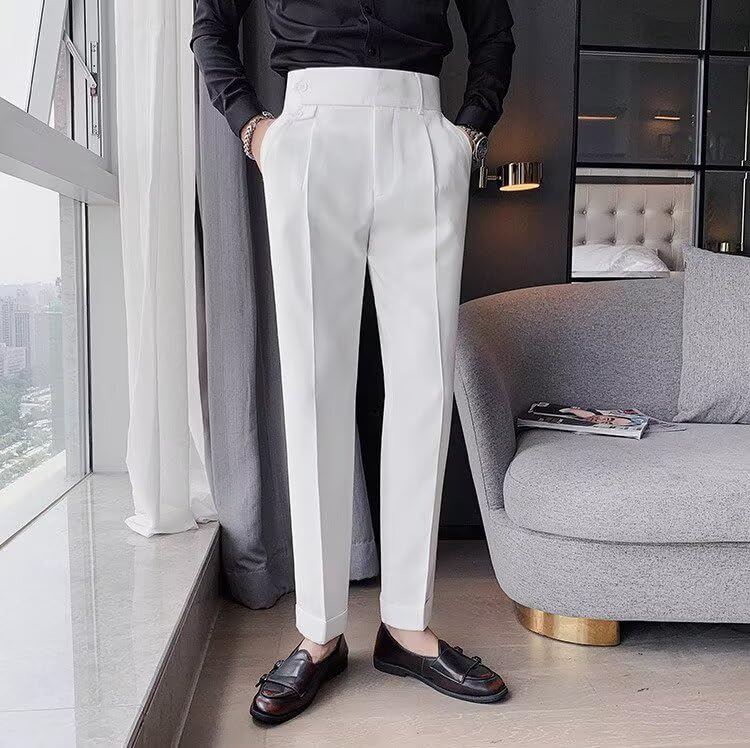 HOT ! Men's Slim Dress Pants Pleat-Front Summer Casual Trouser High Waist Business Suit Pants Long for Men