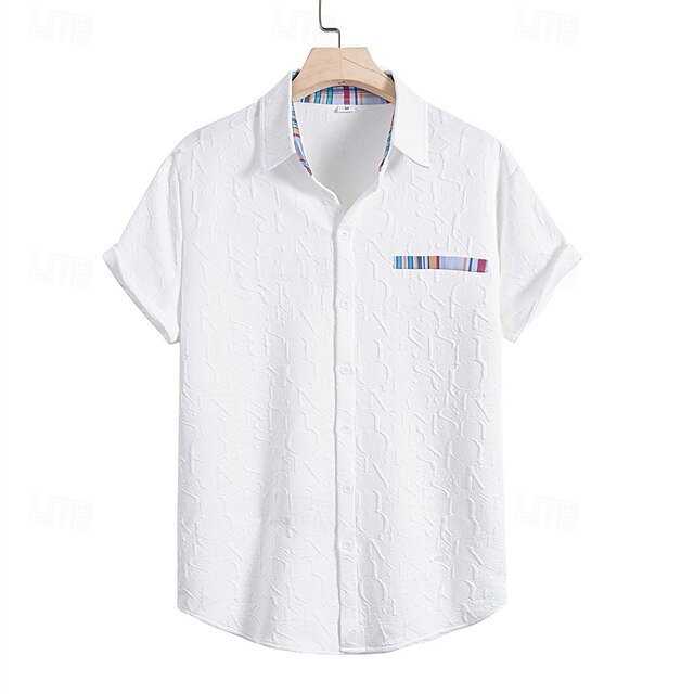 This Men's Shirt Summer Shirt Casual Shirt Beach Shirt Button Up Shirt White Short Sleeve Solid / Plain Color Lapel Vacation Hawaiian Clothing Apparel Polyester Fashion Casual snug Pocket combines elegant design with practical functionality. Every detail has been carefully considered to ensure you get the best possible experience. The first-class construction means this product will serve you well for years to come.