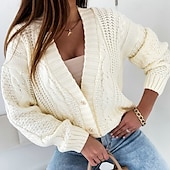 More information about Women's Cardigan Elegant Casual Solid Color Cable V Neck Buttons Long Sleeve Regular Tops Knit Daily White Yellow Spring Fall