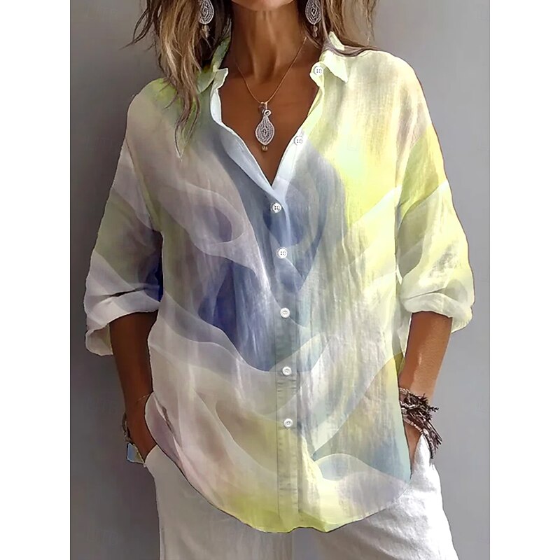Women's Shirt Button Down Tunic Shirt Collar Long Sleeve Graphic Abstract 3D Daily Stylish Retro Vintage Regular Tops Daily Holiday Going out s Yellow Pink Light Purple Spring 2