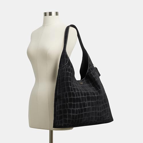 Coach Brooklyn Shoulder Bag 39 in Crocodile-Embossed Suede, B4/Black 4
