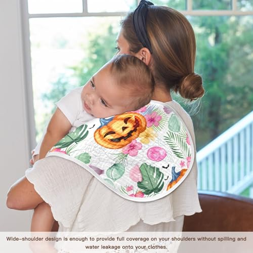 Pumpkins Flowers Fun White Burp Cloths for Babies Burp Rag Cotton Spit Up Rag for Infant Newborn Baby 4