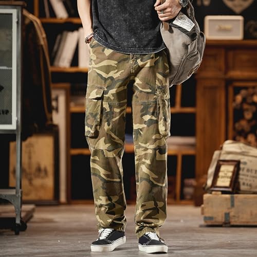 Green Army Fatigue Cargo Pants Men Casual Baggy Camo Pants Men Cool Big and Tall Cargo Pants Ideal for Streetwear