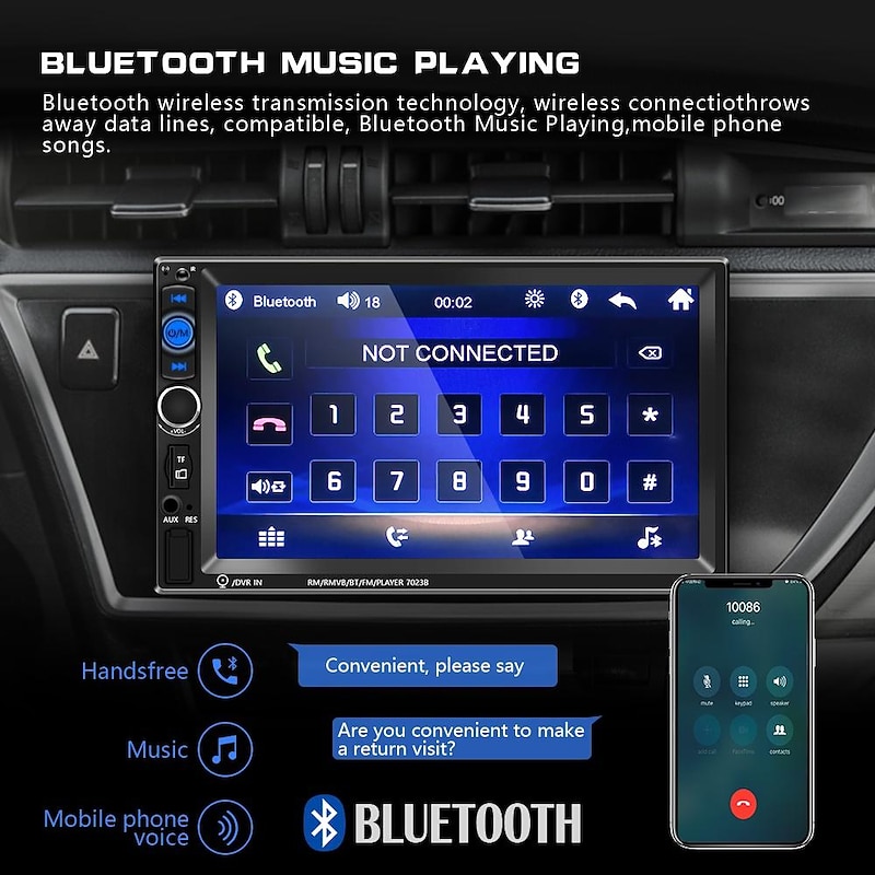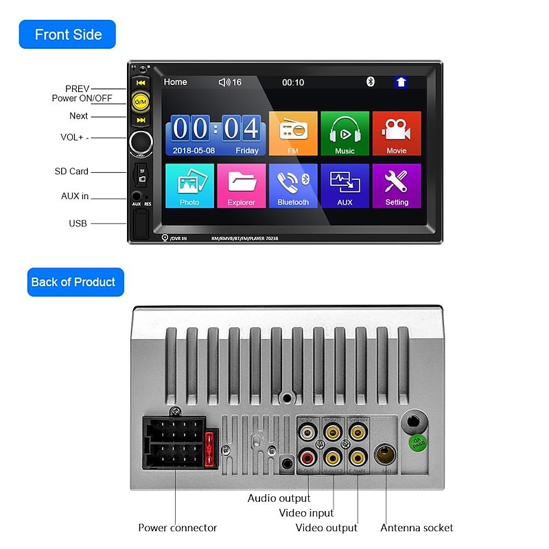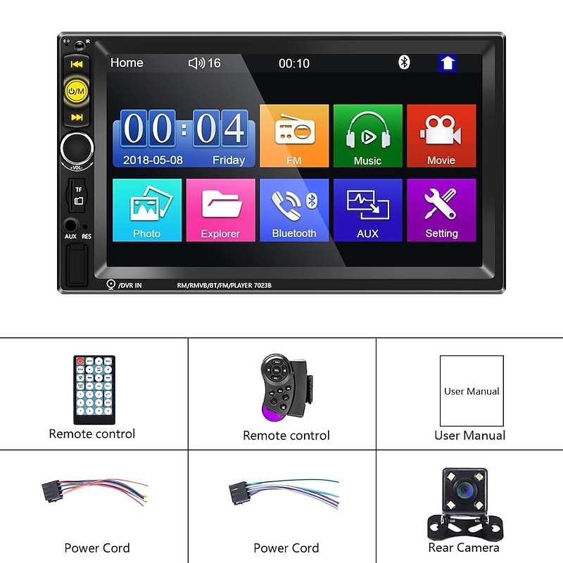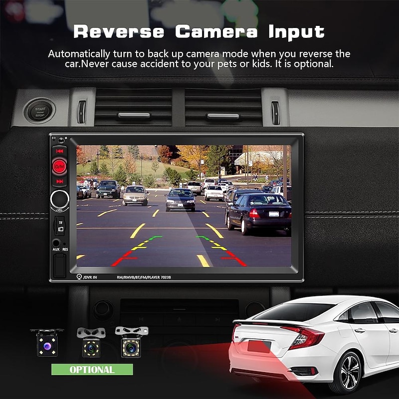 More information about New Pro 2 Din 7'' HD 1080P Touch Screen Autoradio Bluetooth Car Stereo Radio Car MP5 Player Build-in FM AUX USB SD Function Support Mirror Link + Backup Camera(optional)
