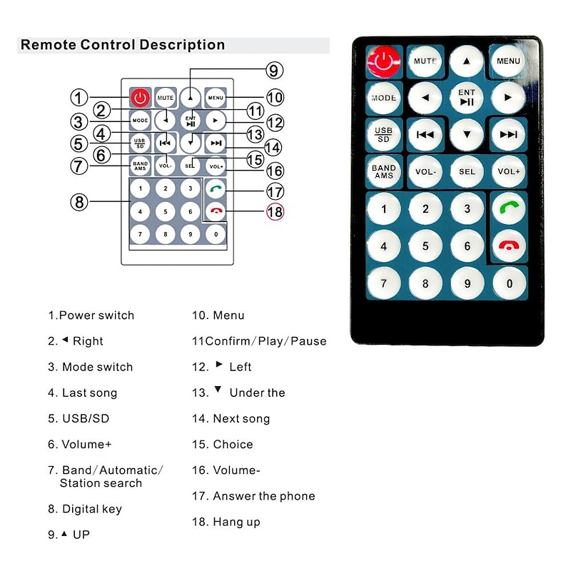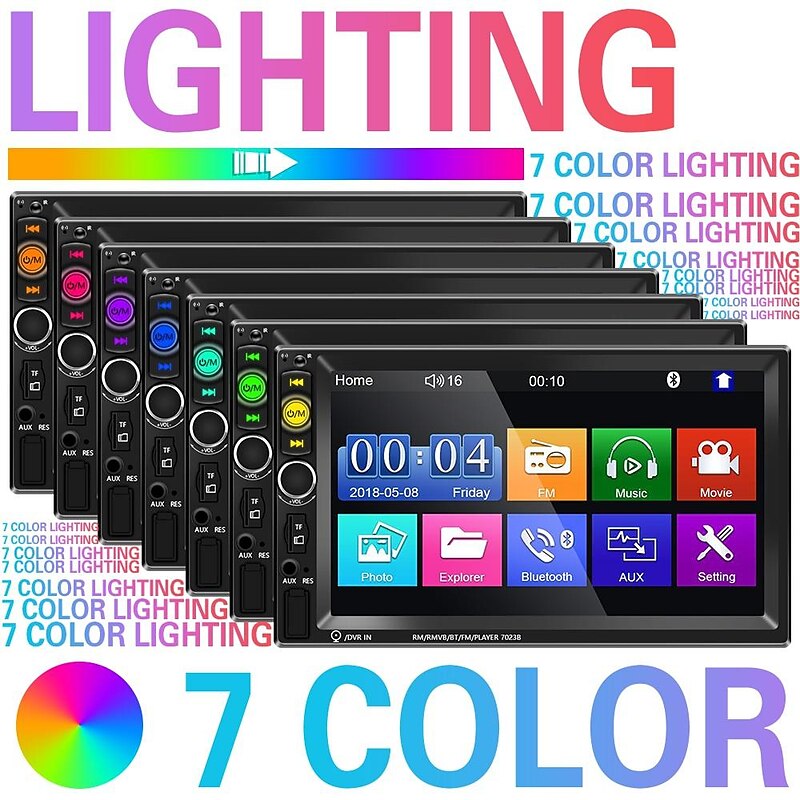 7. Fashionable design: Includes knob volume adjustment and colorful backlight settings that allow you to decorate your car with your favorite color.