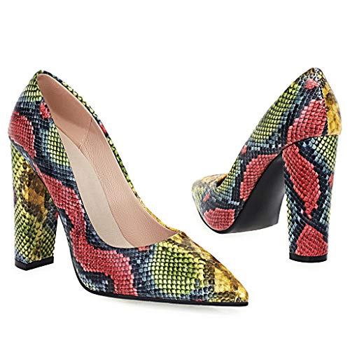 • →Must-Have in Every Girl's Closet: These chunky block heel pumps slip-on snake print party dress shoes are full of luxury and fashion. Women colorfull street shoes is sexy but elegant, reflect the graceful figure of women. Every step you take wearing it will attract all the attentions.