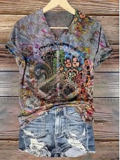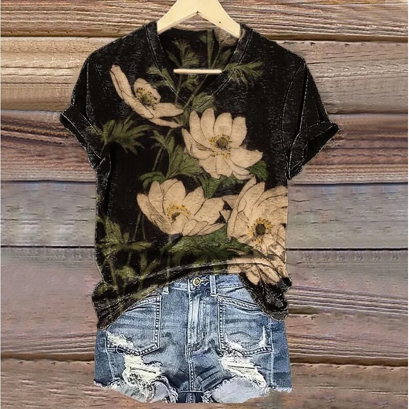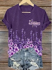 More information about Women's Alzheimer's Disease Awareness T Shirt Floral Graphic Plants Bohemia Vintage Stylish Short Sleeve V Neck Regular Tops Daily Going out Weekend Print Black White Blue Purple Violet Summer