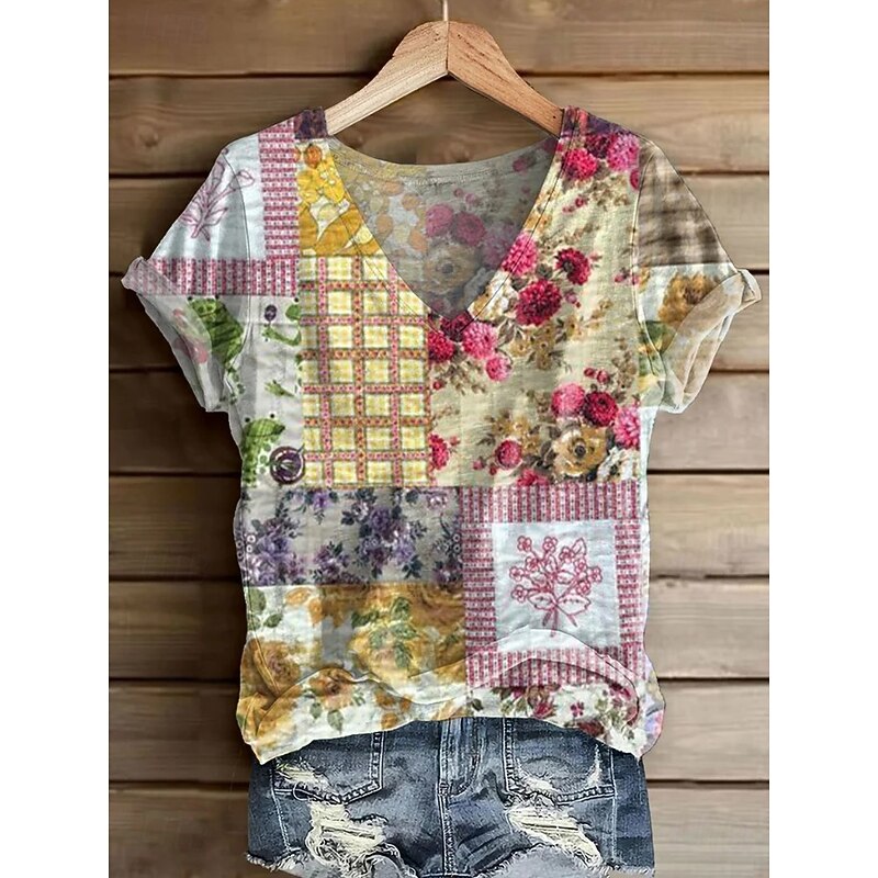 HOT ! Women's Alzheimer's Disease Awareness T Shirt Floral Graphic Plants Bohemia Vintage Stylish Short Sleeve V Neck Regular Tops Daily Going out Weekend Print Black White Blue Purple Violet Summer