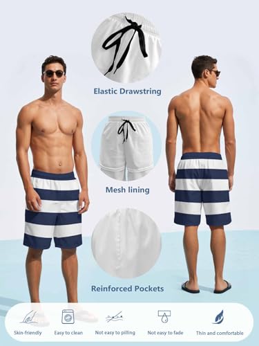 More information about Mens Swim Trunks with Compression Liner,Nautical Navy BlueWhite Stripes Men's Inseam Board Shorts Quick Dry Bathing Suit