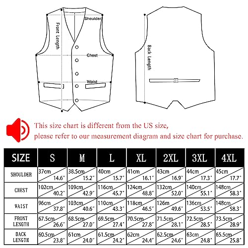 Fabric type: 80%silk+20%polyesterCare instructions: Dry Clean Only or Hand Wash OnlyOrigin: Imported7PCS Vest Set: Formal vest x tie x pre bowtie x pocket square x 2 cufflinks x 1 lapel pin x 1 silver tie clipSuit Vest Size: Please check our sizing chart carefully, cause it is different from USA sizeSilk Tie Size: 59.06 inches(150 cm) x 3.35 inches(8.5 cm); pocket square: 9.5 inches x 9.5 inches(24 cm x 24 cm)Bowtie Size: Adjustable pre-tied bowtie, which longest strap is 19.7 inches and the shortest is 10.4 inches; bowtie length is 4.7 inches and width is 2.4 inchesOccassions: Wedding; prom; business; formal; graduation; casual daily; Halloween; latest Year; Valentine's Day; birthday; anniversary; casual