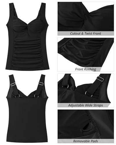 GRAPENT Tankini Tops for Women Twist Front Keyhole Bathing Suits Swim Tankini Swimsuits Padded Ruched Swimwear Top Only 2