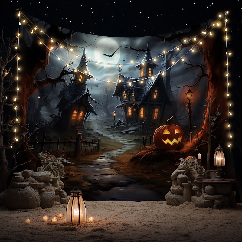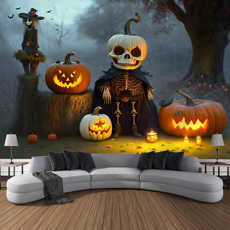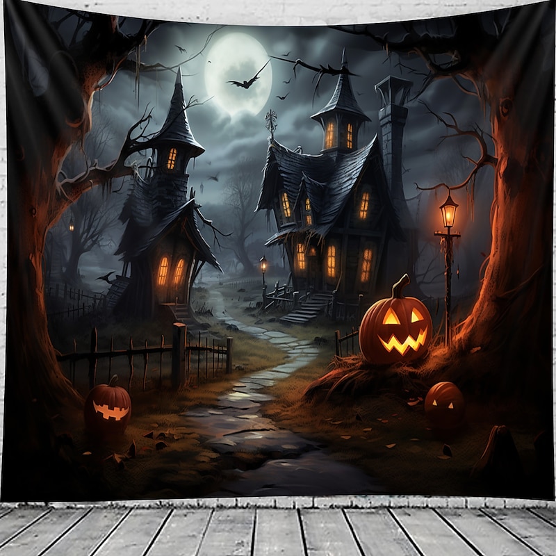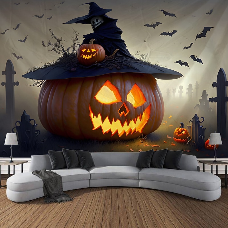 HOT ! Halloween Decorations Wall Art Large Tapestry Mural Photo Background Blanket Curtains Bedroom Living Room Decoration Horror Pumpkin Monster Graveyard Haunted House