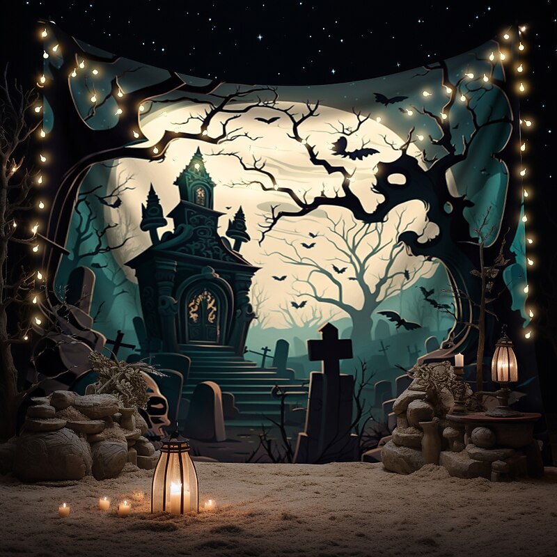 Halloween Decorations Wall Art Large Tapestry Mural Photo Background Blanket Curtains Bedroom Living Room Decoration Horror Pumpkin Monster Graveyard Haunted House 14