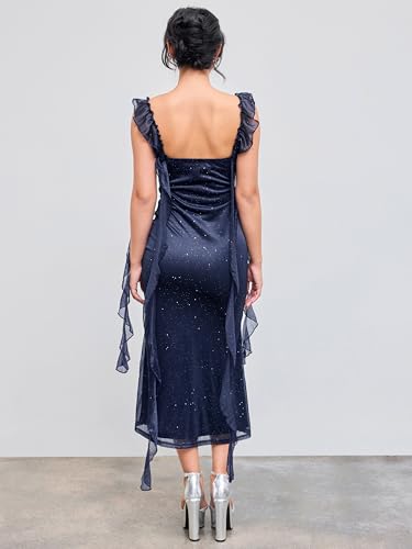CIDER Summer Maxi Dress Wedding Guest Cowl Neck Glitter Ruffle Hem Bodycon Party Slim Formal Sleeveless Dress 4