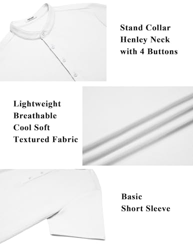 • Henley Design: Men's short sleeve henley shirt is crafted with stand collar, 4-buttons closure pullover shirt with a curved hem, solid color textured henley t-shirt.