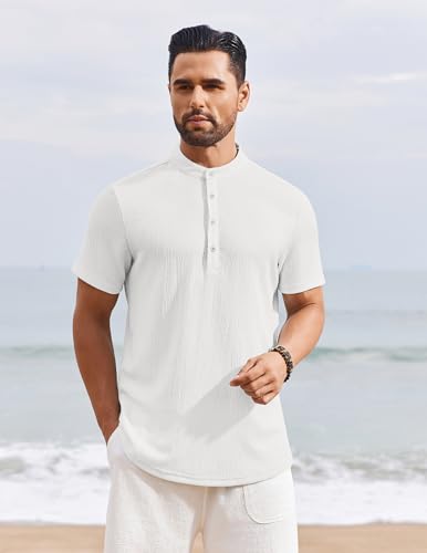 COOFANDY Men's Henley Shirt Short Sleeve Stand Collar Summer Casual Beach Hippie T-Shirts 1