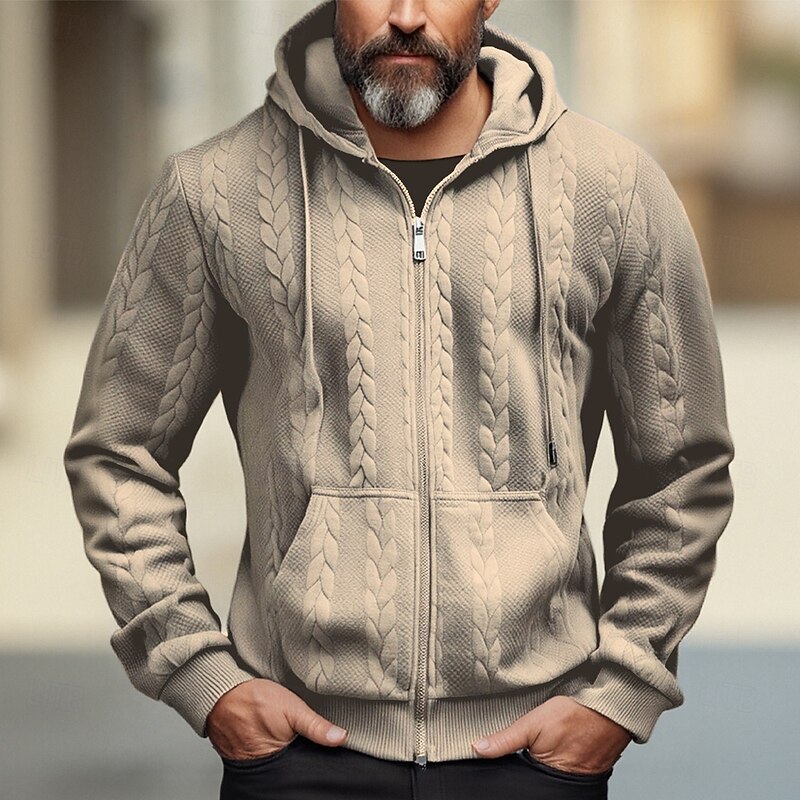 More information about Men's Hoodie Full Zip Hoodie Black White Navy Blue Khaki Gray Hooded Plain Jacquard Pocket Sports & Outdoor Daily Holiday Streetwear Basic Casual Clothing Apparel Hoodies Sweatshirts Long Sleeve